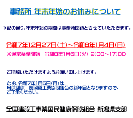 新潟県支部事務局(℡ 0258-34-0231)まで、ご一報をお願いします。