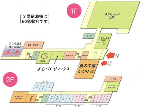 -ご注意- 1.宿泊料金表は素泊まり料金ですが、隣接して「食の工房かがり火」がございます。 2.基本的に浴衣、洗面具、タオル等は各自ご用意ください。なおリースも行っております。 3.自炊の場合の食器・調理器具類は、準備してございます。 4.必ず、予約状況を確認してください 5.研修室・脱衣場・調理場、食堂には冷房はございませ 6.エレベータはございません。 -休館日- ・毎月第四月曜日 (休日の場合および繁忙期は、前週・翌週になります。)