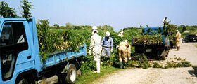 公からの要請により、河川の氾濫防止のため、道路や河川敷の雑木伐採を行っています。